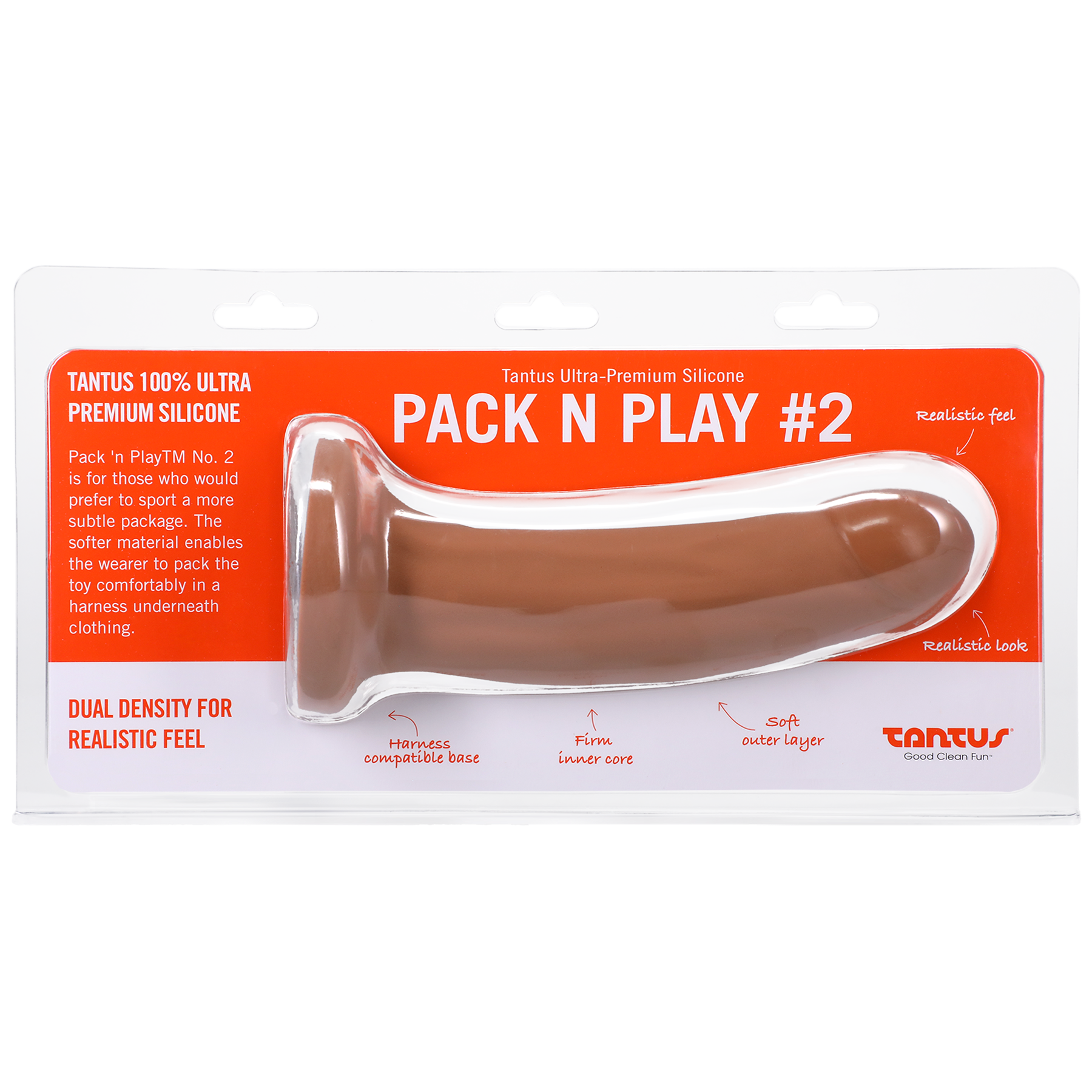 Tantus’ Pack ‘n Play line was created to offer state of the art design in a toy made for both packing and use during sex. Pack 'n Play No. 2 is a more realistic size, based on our bestselling Mark design. A Dual Denisty dildo, the Pack n Play is soft on the outside with a hard muscle core on the inside. Give it a squeeze to feel the silcone compress then resist with it's inner core. Imagine how incredibly realistic this dildo feels against your most sensitive parts. When it’s time to play, the harder silicone inside the very base of the toy makes it a perfect fit.